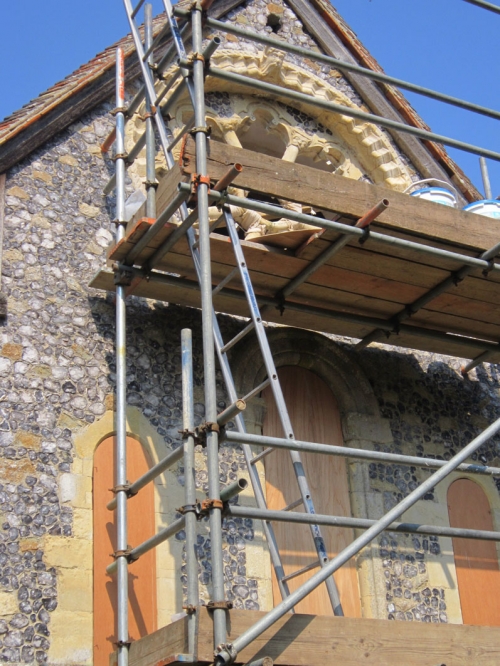 Work has finally started on the restoration and conservation of the early Romanesque wheel window sponsored by this foundation in conjuncrion with Orbis Pictus Trust. To see details of the programme of repair at St. Mary’s please click the PDF symbol below.